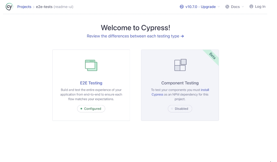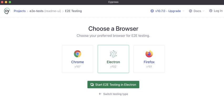 Click on the button ' Start E2E Testing in Electron '.