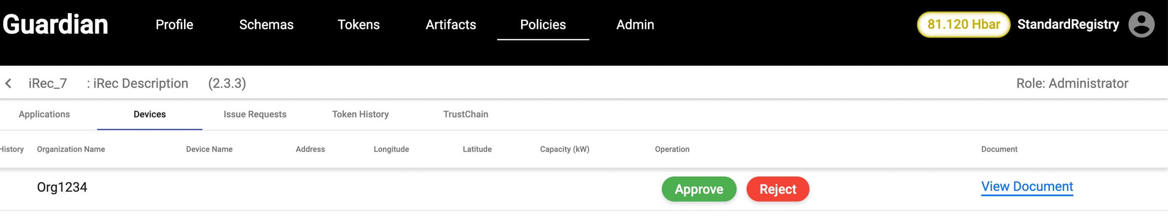 8. We log back in as SD and after checking the device details, we can either approve/reject the device. We approve the device for now.