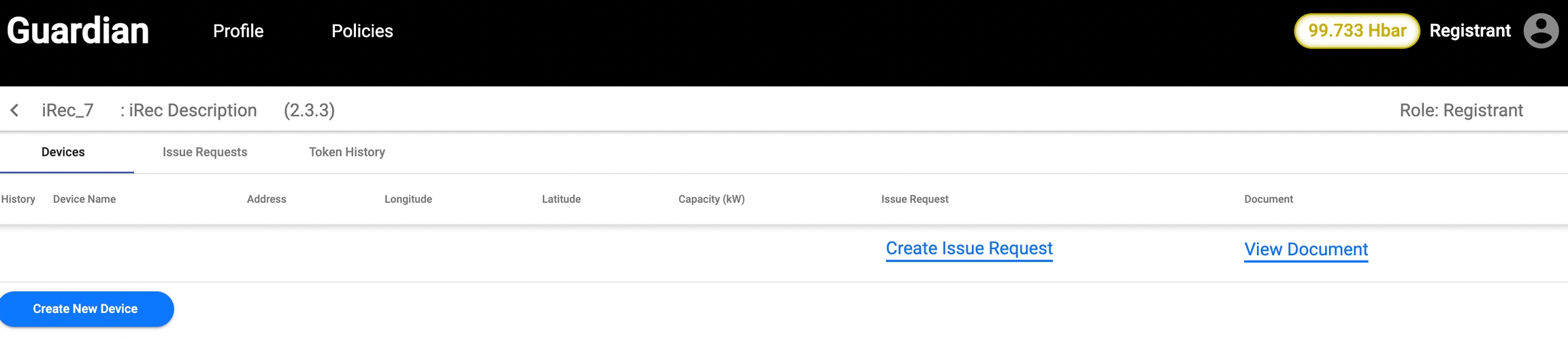 9. Once device is approved, we log back in as Registrant and click on Create Issue Request as shown below: