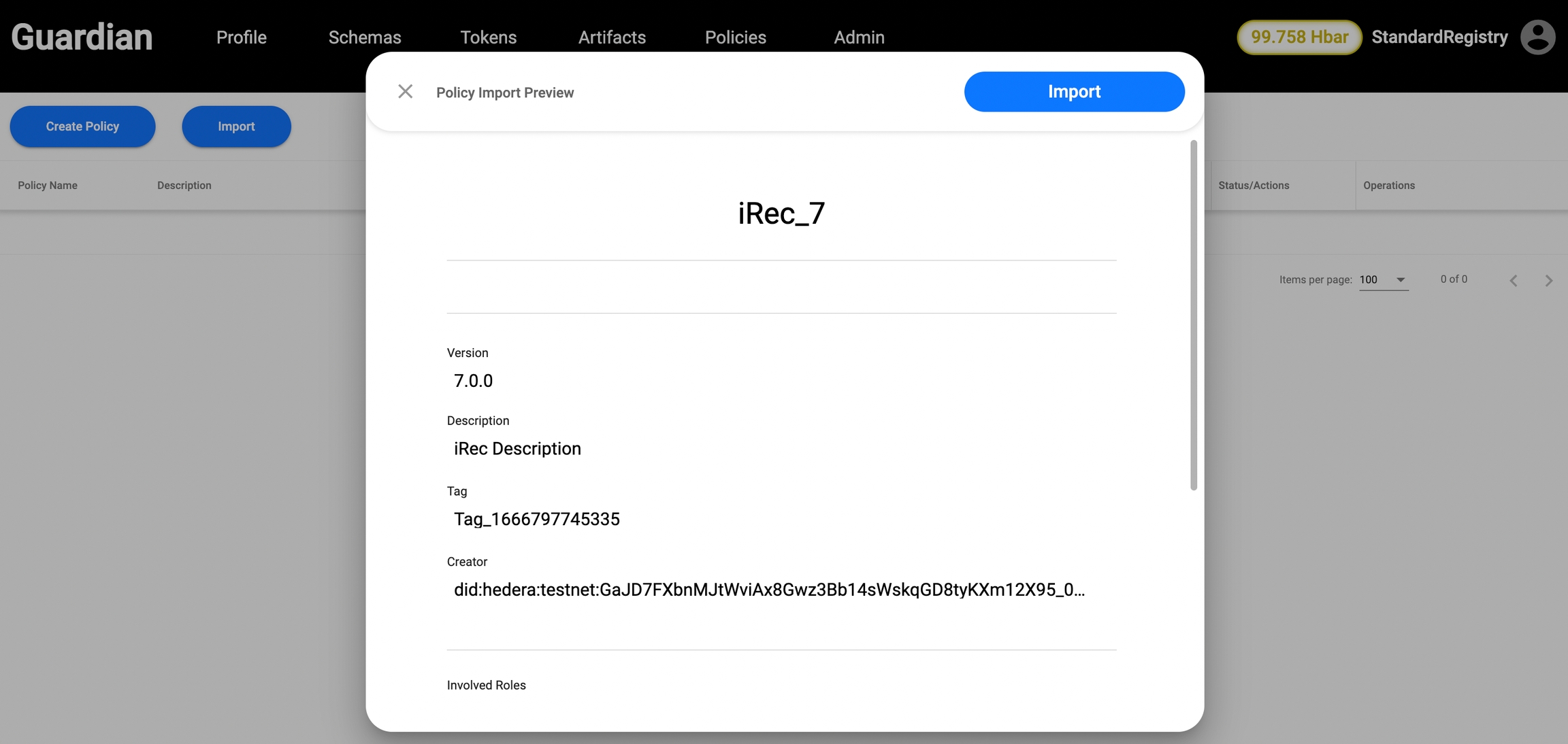 2. Once it is selected, we can also preview the policy before importing it. To import, click on Import button as shown below: