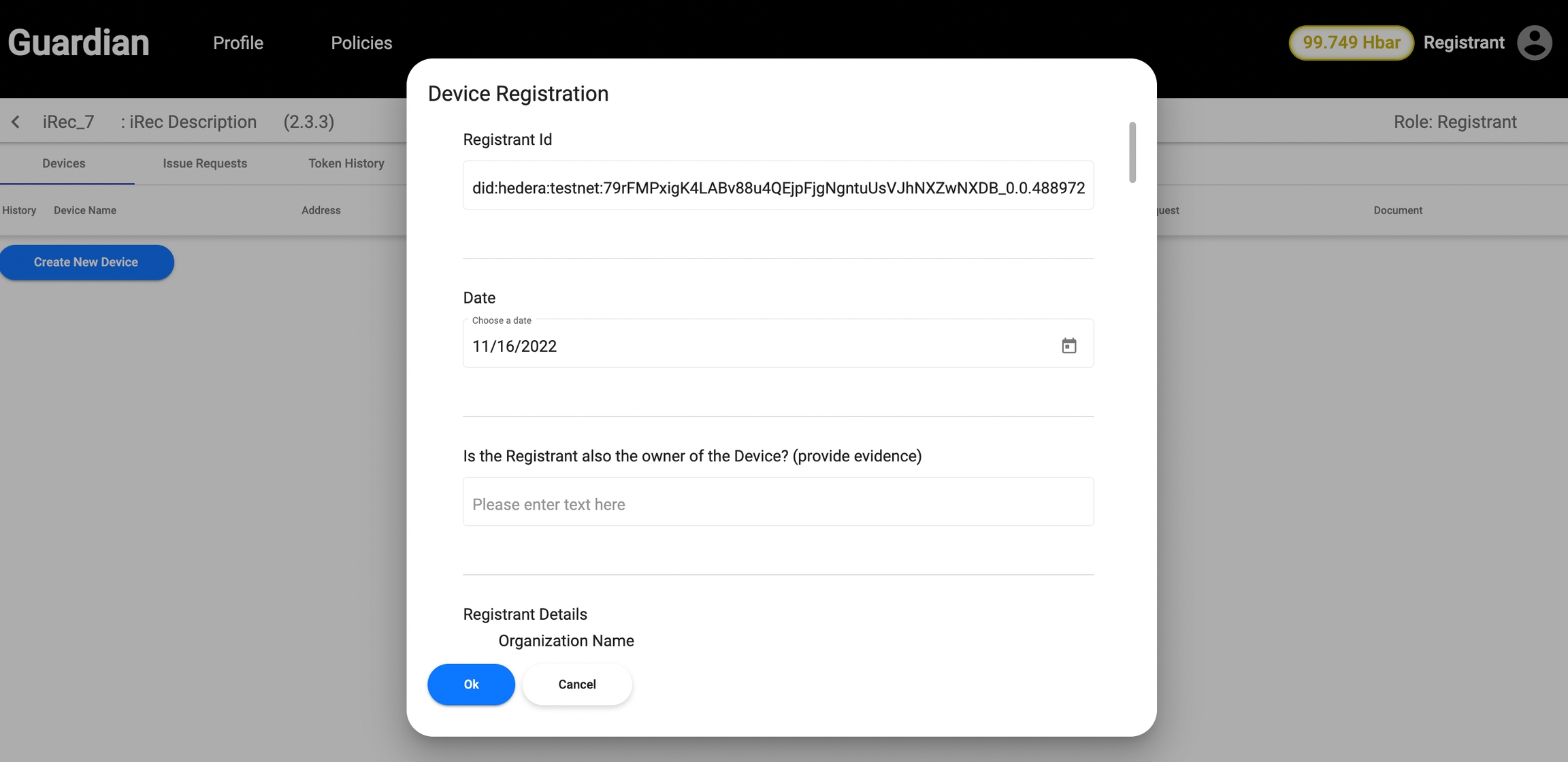 7. Once approved, we logout as Standard Registry and login as Registrant. As a registrant, we register device by entering all the device details.