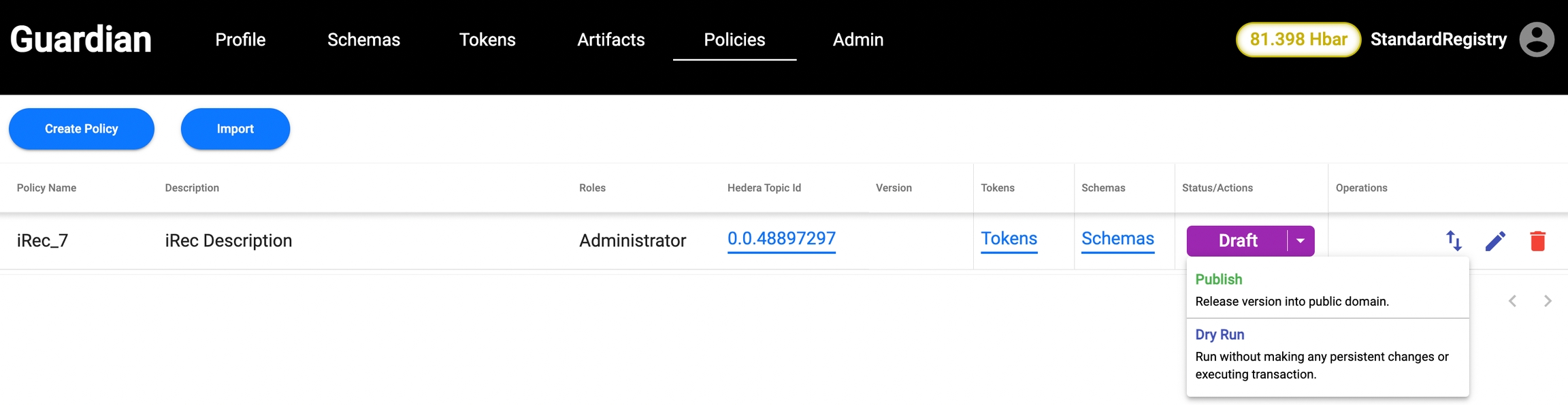 3. Once imported, we can either run the policy in Dry run mode or we can publish it by clicking on publish button from the dropdown. For testing purpose, we will publish the policy.