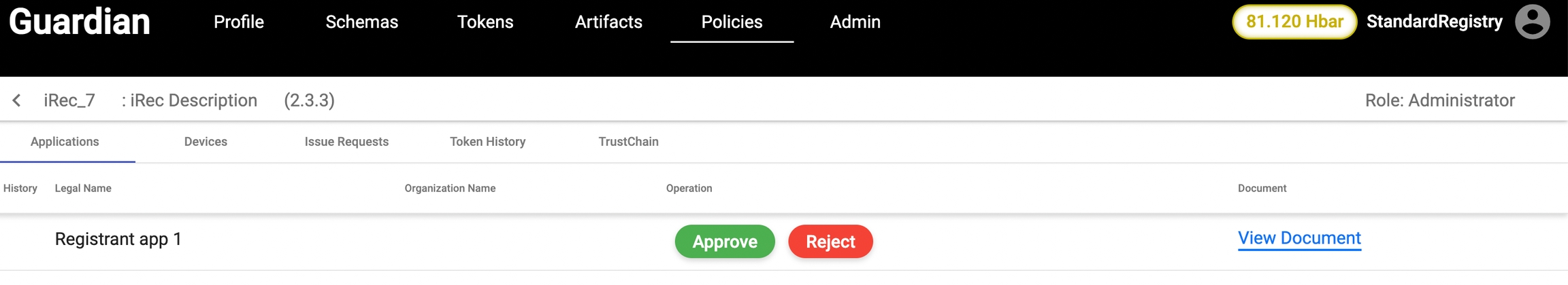 6. Now, we login as Standard Registry and approve the Registrant role by clicking on Approve button: