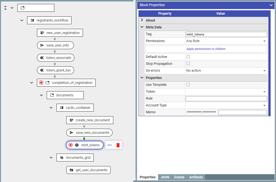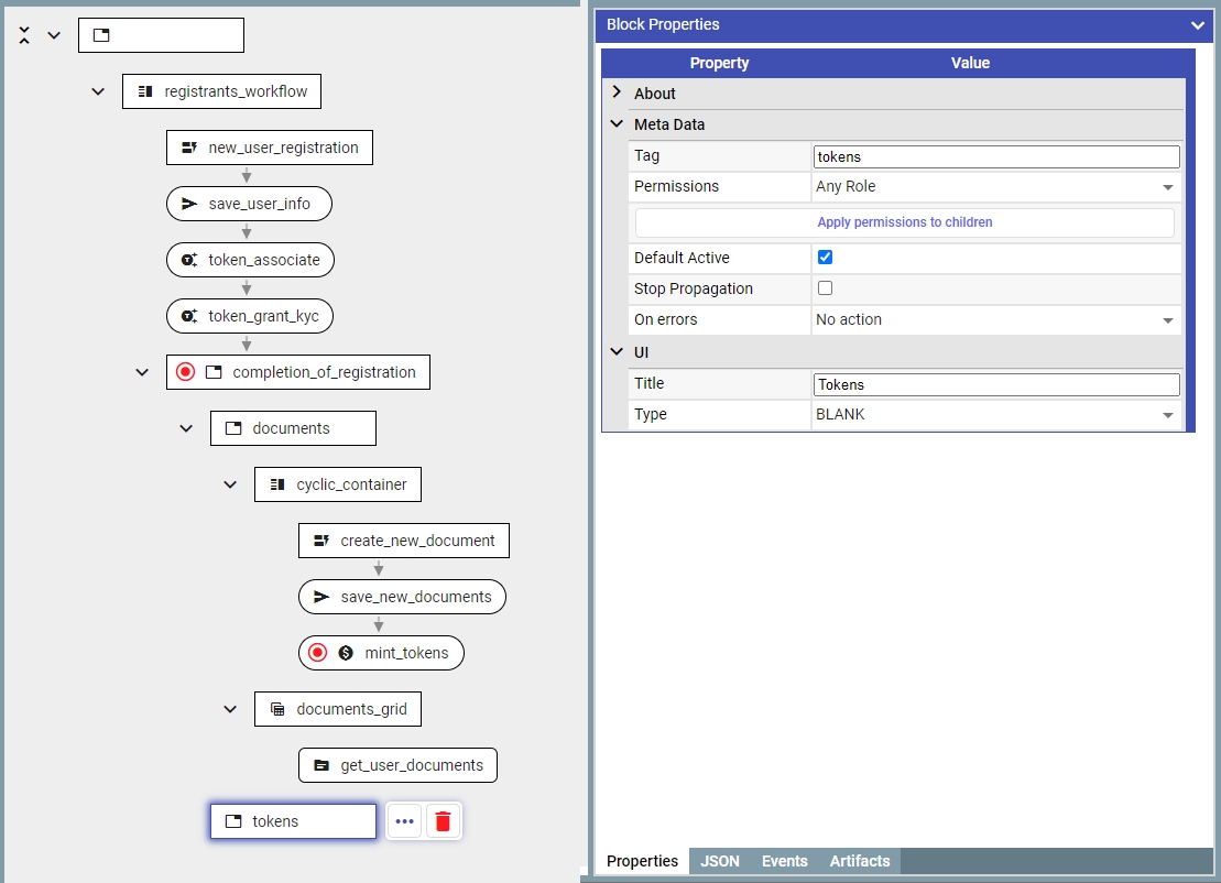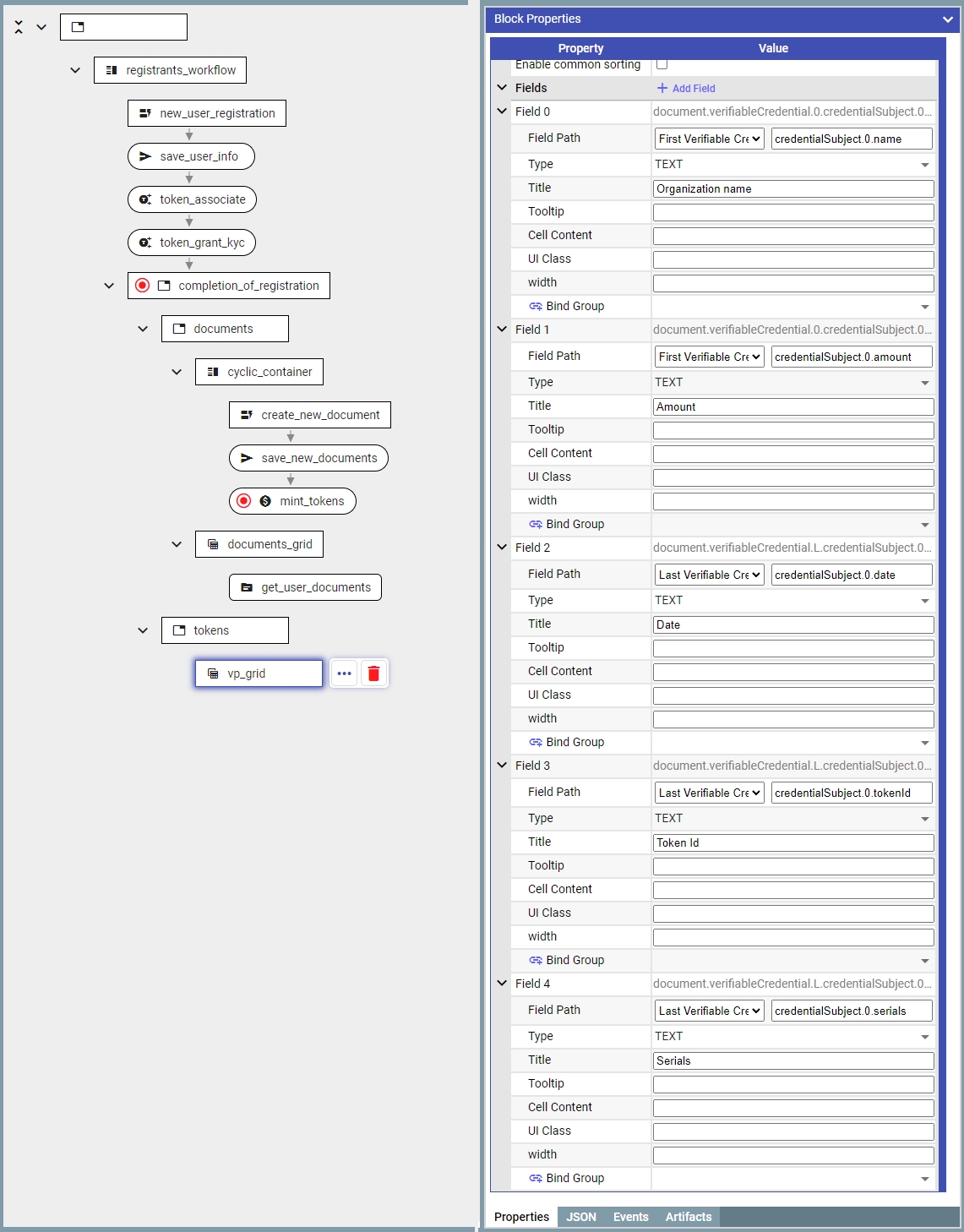 1.3 Add ‘interfaceDocumentsSourceBlock’ into the ‘tokens’ container and configure its columns