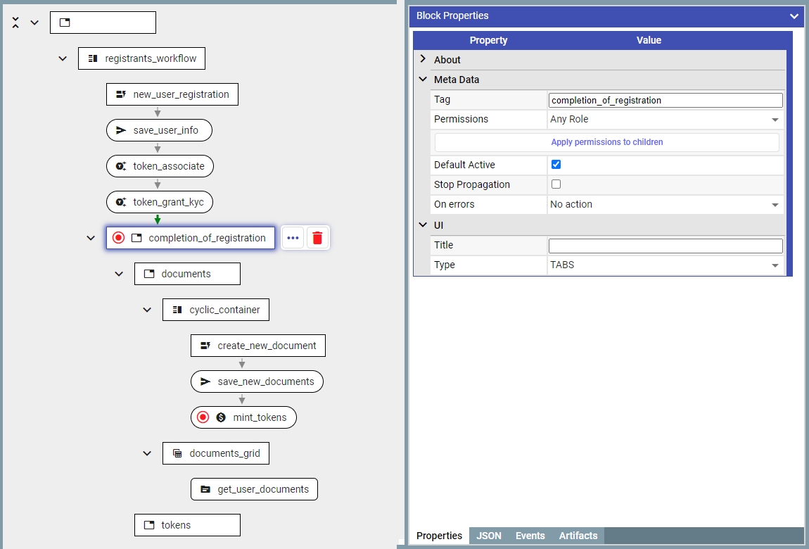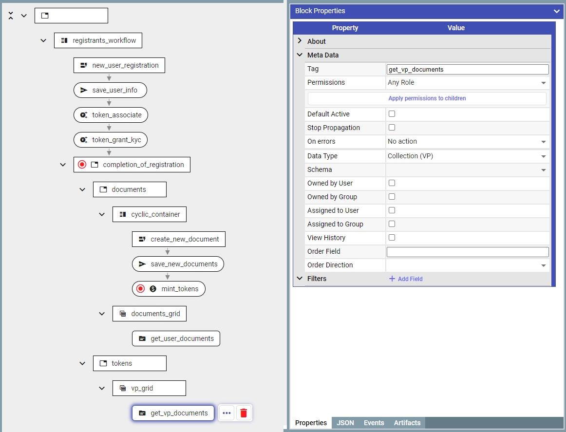 To enable document submission we will use document input block (requestVcDocumentBlock) and document persistence block (sendToGuardianBlock)