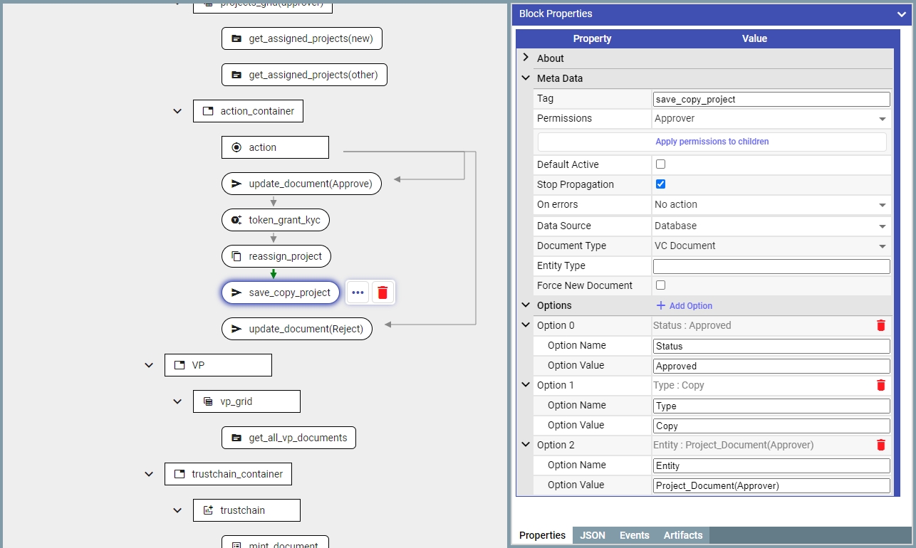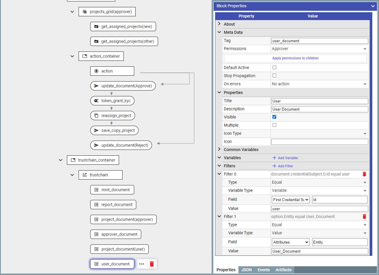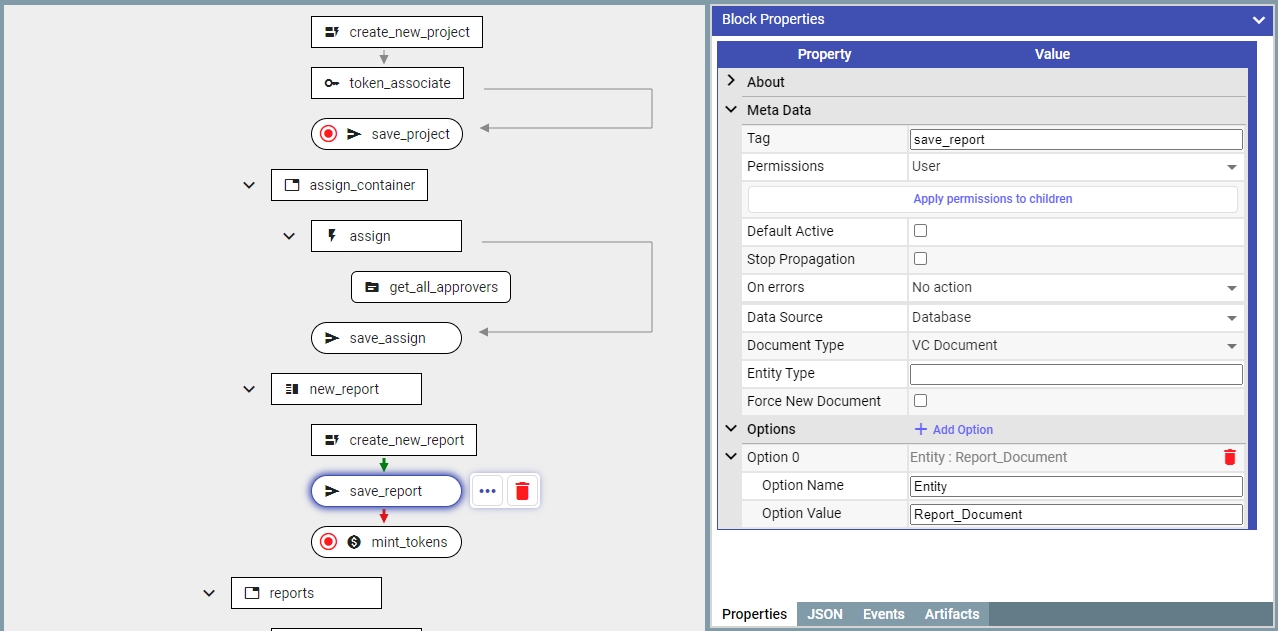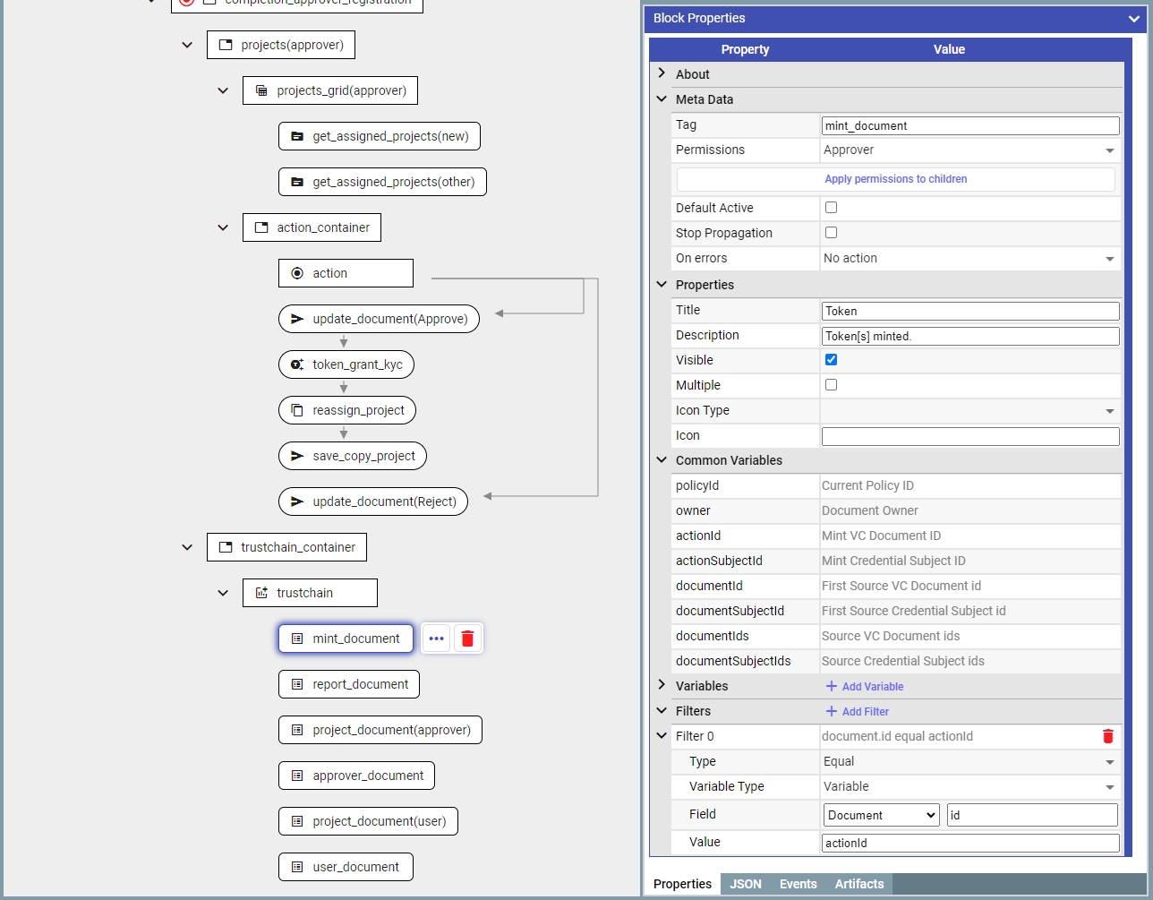 1.3 We will build the following chain in this example: mint _VP – MRV Report – Project (approved and signed the the Approver) – Approver document – Project (created and signed by the user) – User document._