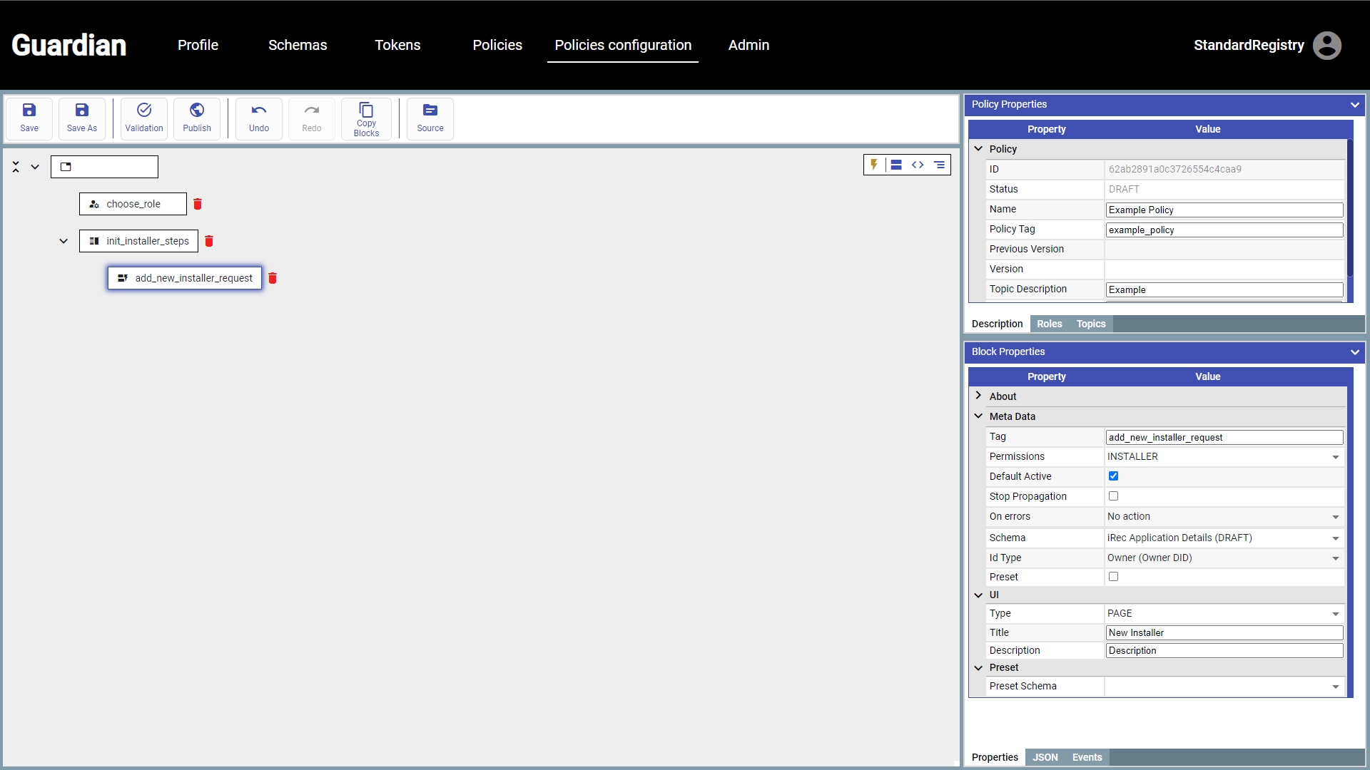// After the role is selected the corresponding branch in the policy will become accessible for the user.