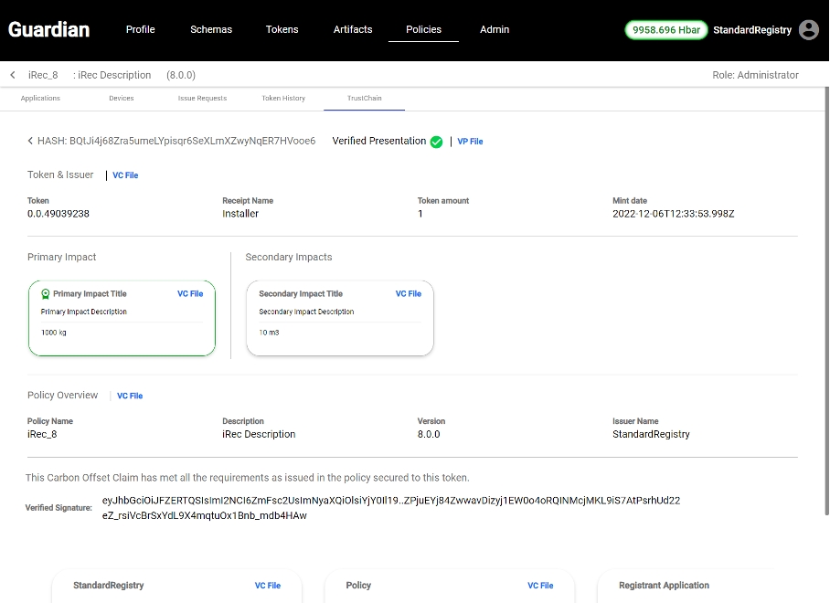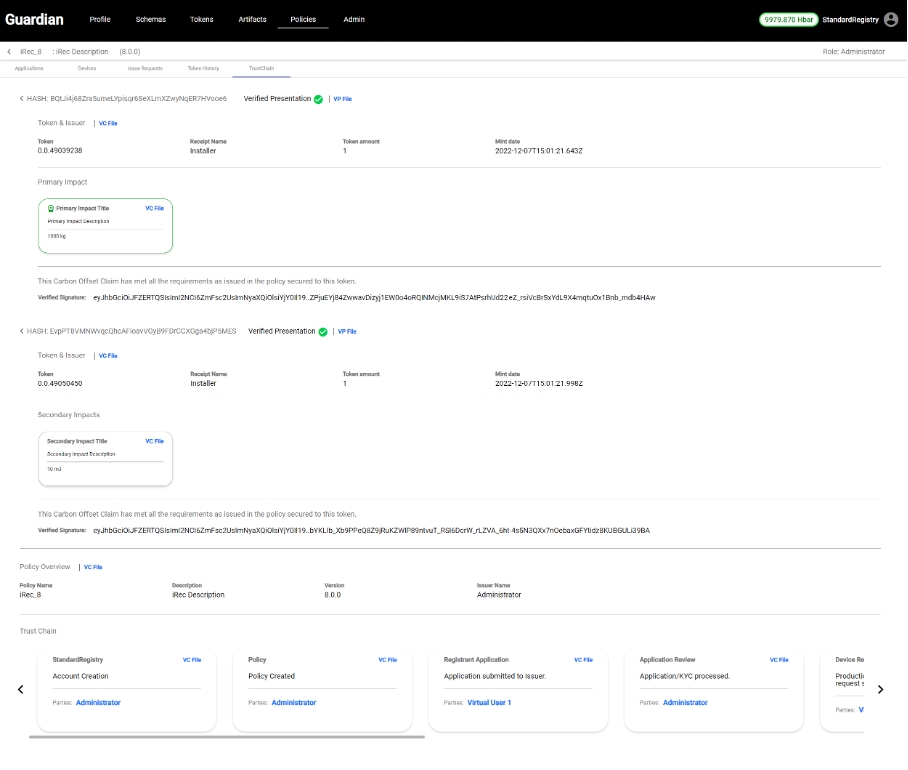 We have added new Impacts Section to display Primary/Secondary Impacts token details in Trustchain: