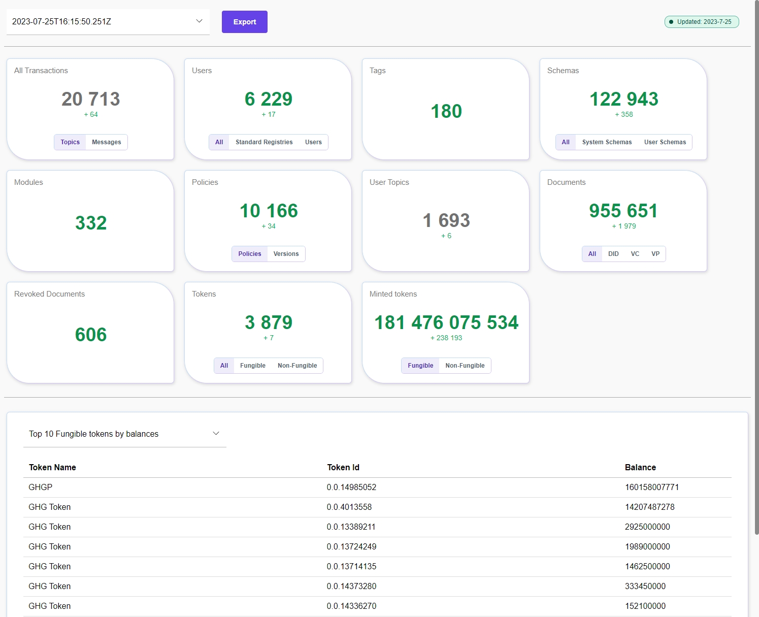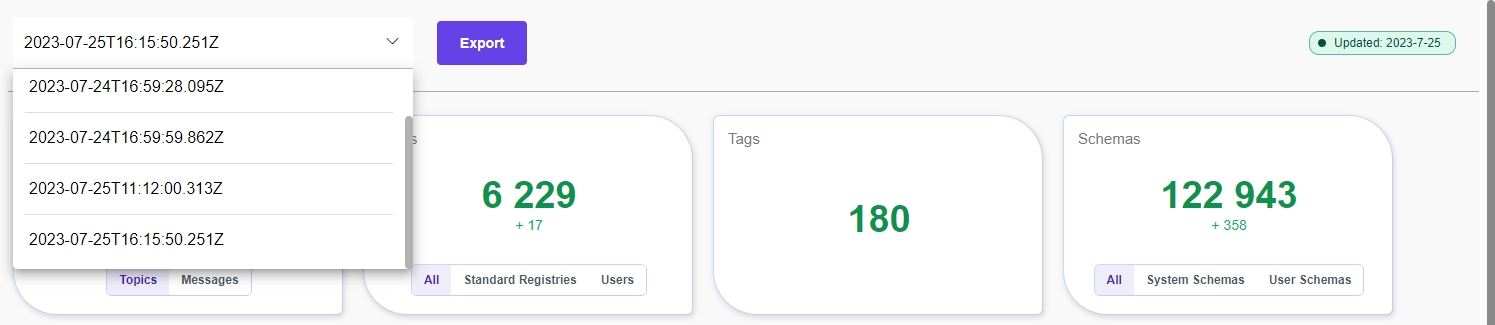 The latest statistical refers can be exported in the format of the Excel file by clicking on the ‘Export’ button in the corresponding section of the UI.