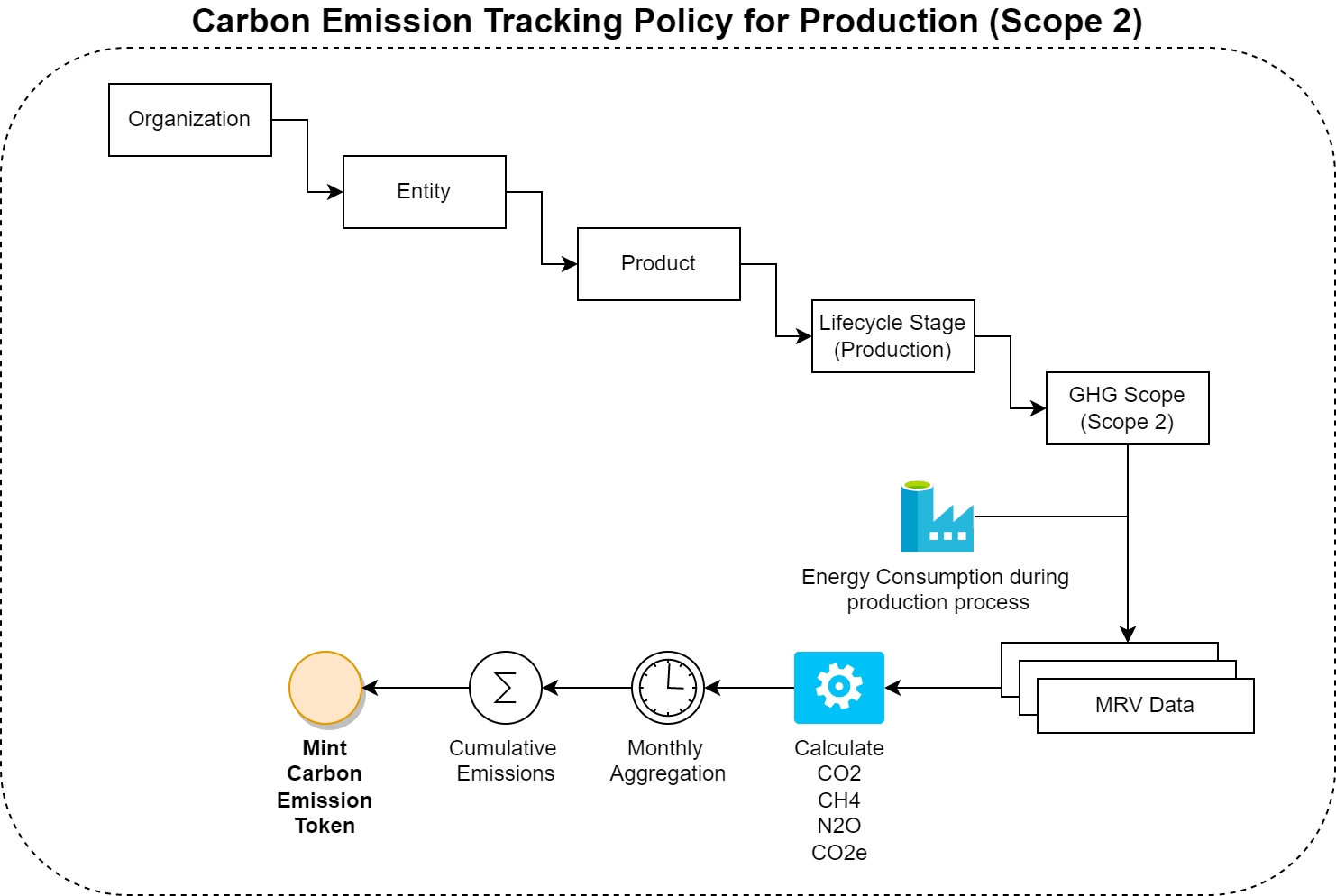The calculated GHG emission values are aggregated on a monthly basis and the carbon emission token is minted at the end of each month.
