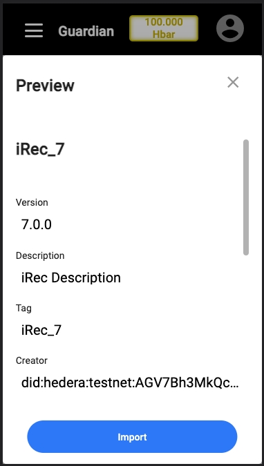 The importing of policies was also adapted from the click on the "Import" button under the "Policies" menu, up until the preview of the policy the User is about to import.