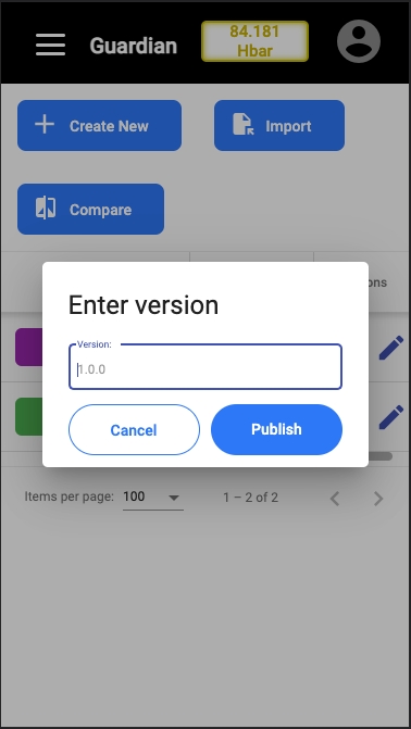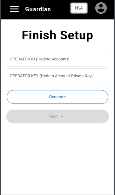 Some screens for the Standard Registry were also adapted, starting with the registration into Guardian after creating a username and password and also the mobile adaptation to associate Hedera credentials and initial form upon creating an account.