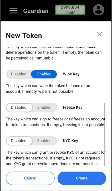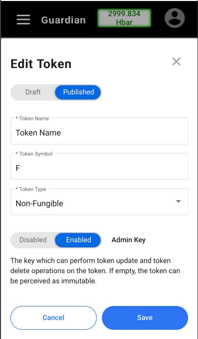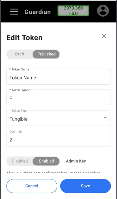 Standard Registry creating / editing a token
