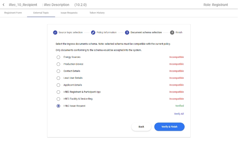 Once, policy information is reviewed and confirmed, third step is to select the schemas/documents from the policy to be integrated.