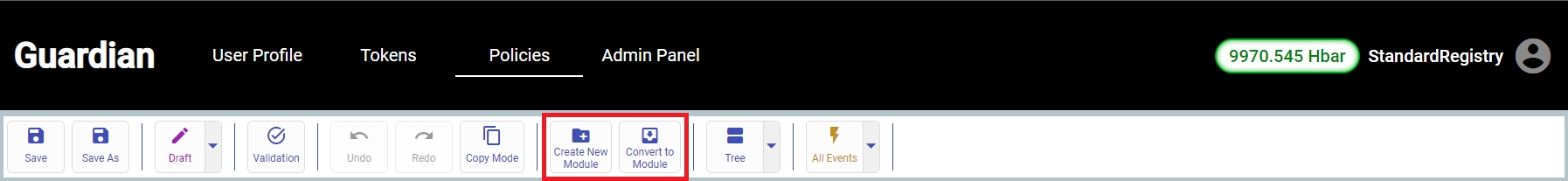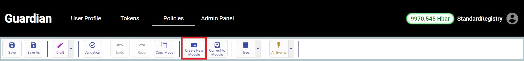 In the Policy Editor new modules can be created similarly to creating of a new block.