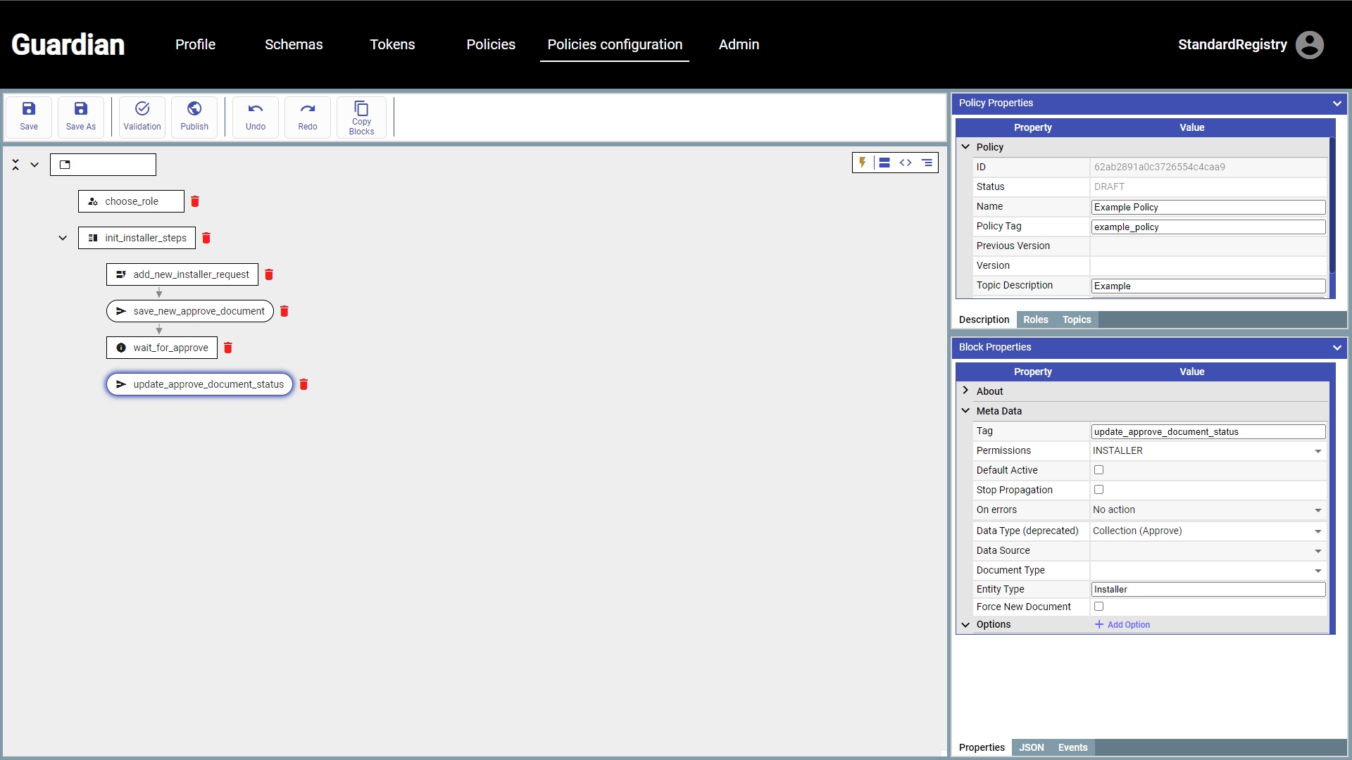 Again we need a Send step since we need to send the approval we obtained from the Installer to the Guardian to update the Policy Workflow State Object which we created with the approval document. This update is necessary to proceed with the steps in our Policy Action. To do this we again click on the “Send” icon in the top navigation bar to add another Policy Action step.