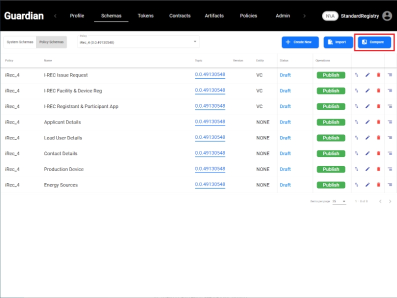 We click on Compare button present in Schemas tab as shown below: