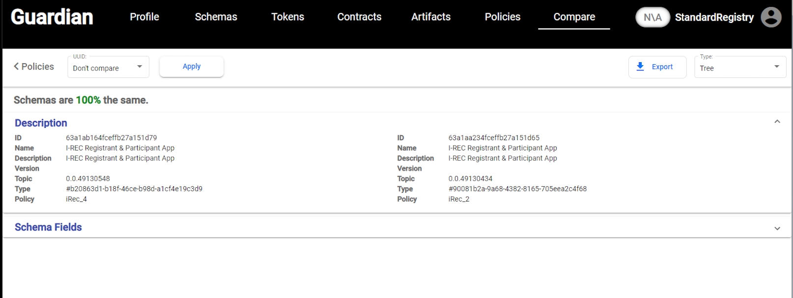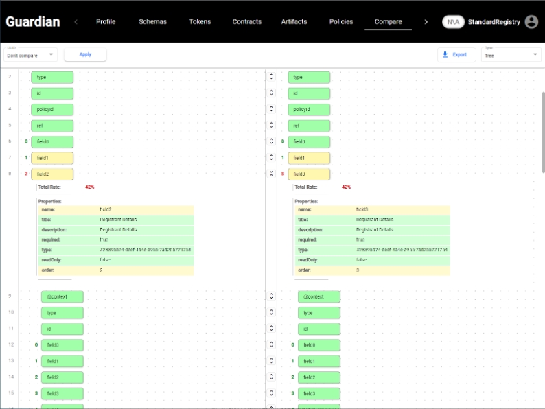 Differences in UUIDs and Header IDs are taken into consideration when comparing blocks and their Properties. (For example, when two schemas are exactly the same in every property they will still be considered as different due to differences in the values of IDs which by definition are always different)
