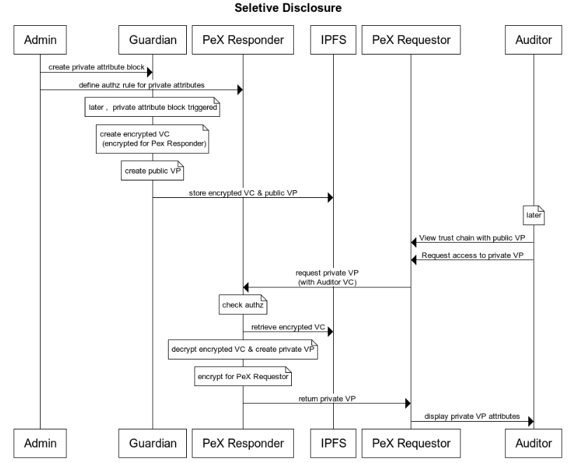 The Guardian Selective Disclosure (SD) mechanism supports a more granular access model in which particular attributes may be protected against viewing by the public and instead will be viewable only by authorized parties like a VVB, ARMM or similar with a justifiable need for that information.