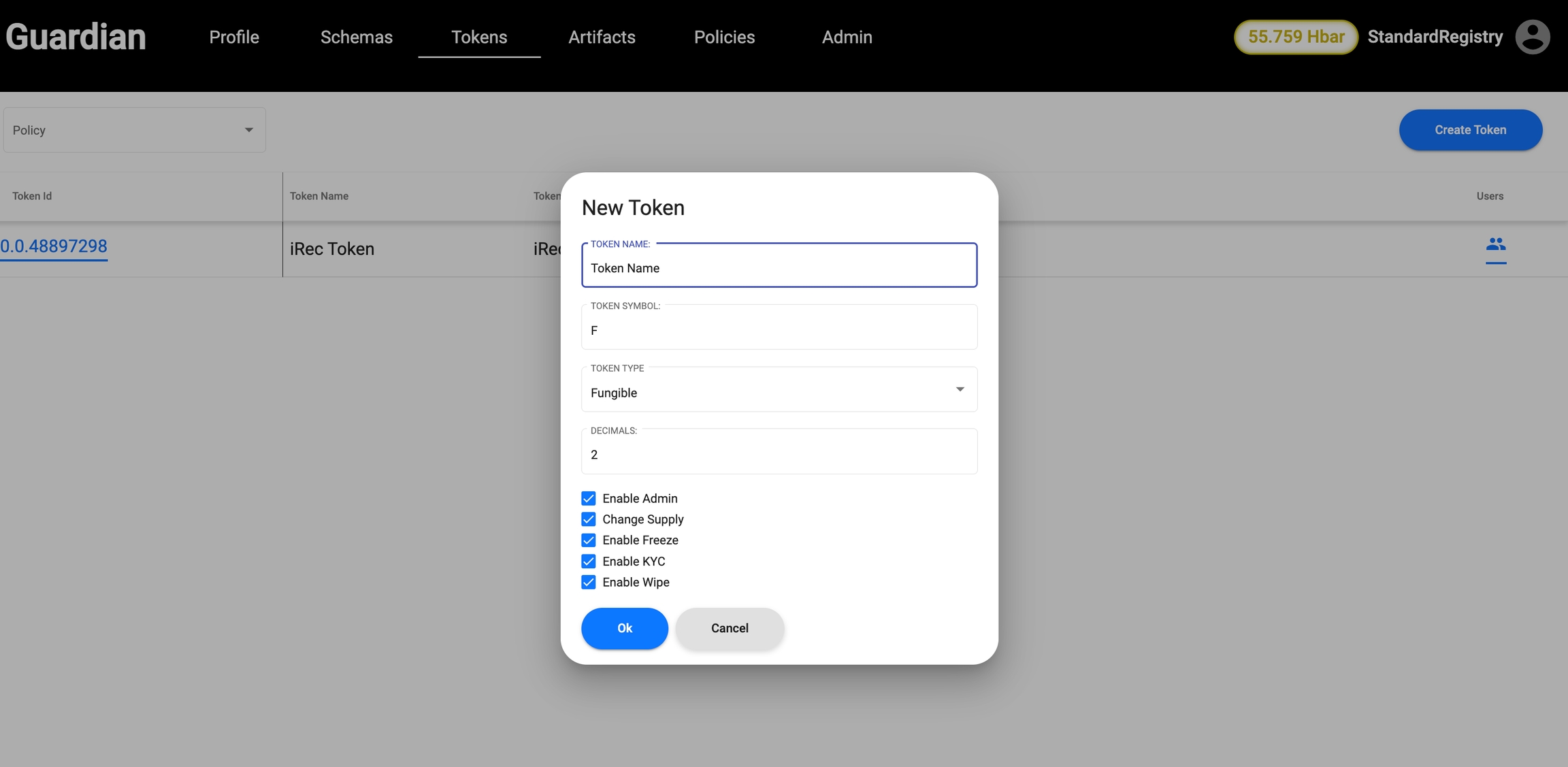 Step 2: Once button is clicked, we get a pop up box to enter token details such as Name, Symbol etc.