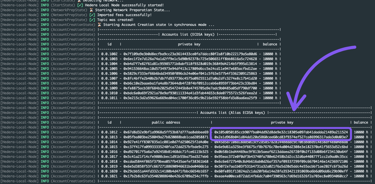 localurl: ➤ This is the Hedera JSON-RPC Relay endpoint provided by the local node (via Docker). It enables EVM-compatible tools like Hardhat and Ethers.js to interact with the Hedera network.accounts: ➤ One predefined ECDSA private key provided by the Hiero Local Node.
